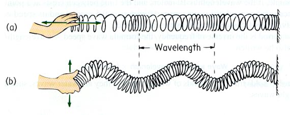 Transverse & longitudinal waves on a helical spring.